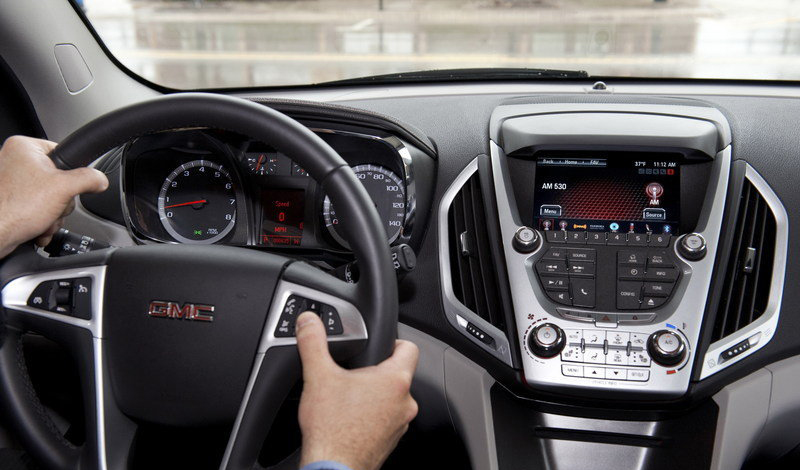 Interiér vozu Terrain je pak pravým opakem toho co představuje exteriér. Vše je přehledně uspořádáno a je tu kladen velký smysl pro detail. Ovládací prvky a tlačítka jsou přehledná a ovládání je intuitivní. Kromě nejmodernějších technologií uvnitř vozu je v nabídce i luxusní materiál v podobě saténového potahu či kožených sedaček.