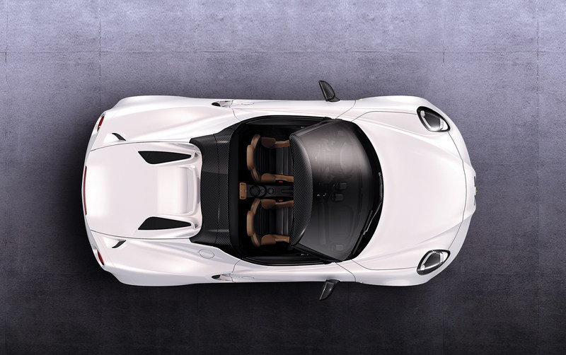 Přední strana má nižší mřížku a prsotřední část zaujímá ostrou hloubku do karoserie vozu. V nové verzi Spider si můžeme všimnout především upravených světlometů a nových kol. Beze změny nezůstal ani výfuk s prvky uhlíku. Samozřejmostí je pak již zmíněná nová střecha, která je pro novou verzi odnímatelná.